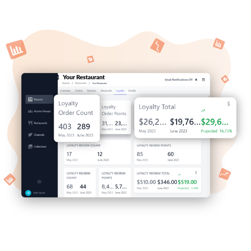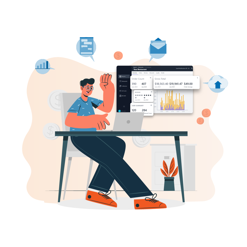 With Chef Reports, you gain the power of real-time, data-driven food ordering insights to monitor your revenue growth and the effectiveness of our growth services and loyalty program. Beyond that, we actively track your data, allowing us to refine our strategies and enhance your customers' experience continually. Your success is our mission. Learn more