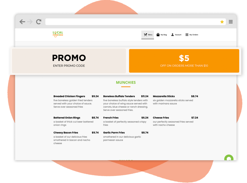 - Encourage repeat orders with discount, coupons, and one-click reorders
